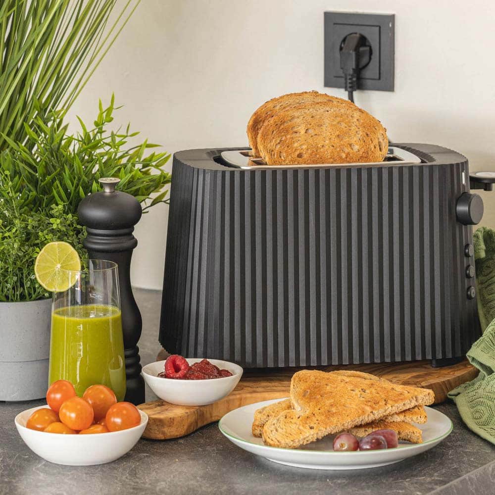 De Alessi Plissé is niet alleen een esthetisch meesterwerk, maar levert ook indrukwekkende prestaties in de keuken. Hij is ontworpen om gelijkmatig te roosteren, zodat je toast elke keer weer perfect krokant is. Of je nu sneetjes brood, bagels of dikke boterhammen roostert, deze broodrooster zorgt voor een consistente bruining en een heerlijk resultaat. Met de ingebouwde ontdooifunctie en opwarmfunctie biedt de Plissé broodrooster ook flexibiliteit voor drukke ochtenden.