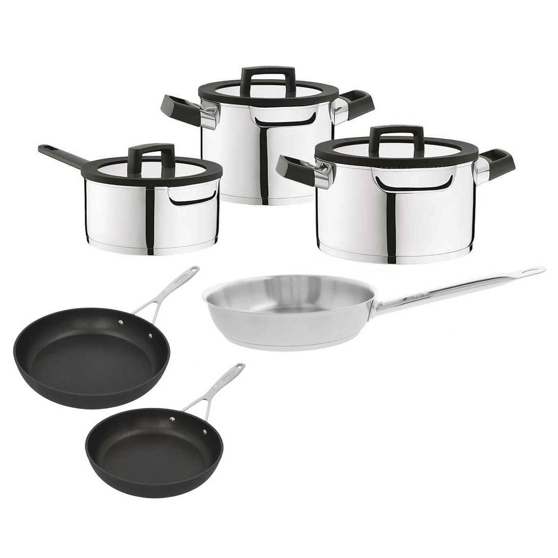 Premium mix van RVS-, aluminium- en anti-aanbakpannen.