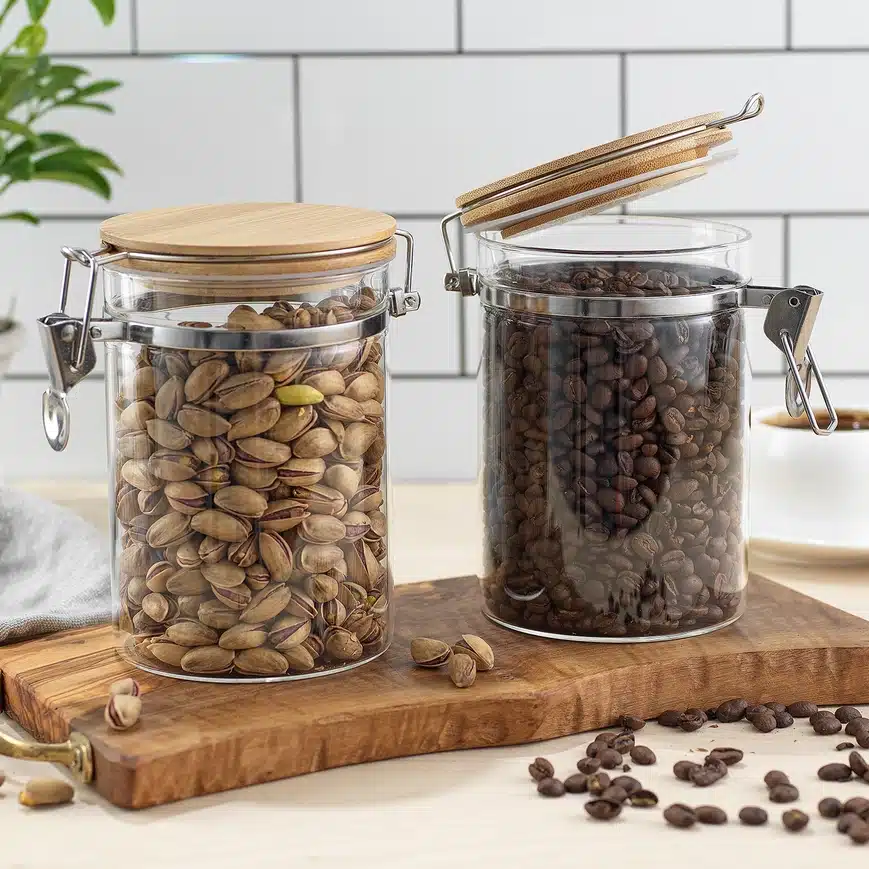 De potten zijn voorzien van hoogwaardige bamboe deksels, die zorgen voor een luchtdichte afsluiting. Deze deksels helpen de inhoud vers te houden door de toegang van lucht en vocht te minimaliseren, wat perfect is voor het bewaren van voedingsmiddelen zoals koffie, thee, noten en pasta. Bamboe is een duurzaam en milieuvriendelijk materiaal, waardoor deze potten een bewuste keuze zijn voor iedereen die op zoek is naar duurzame opbergoplossingen. De combinatie van glas en bamboe voegt een natuurlijke charme toe aan het moderne ontwerp.