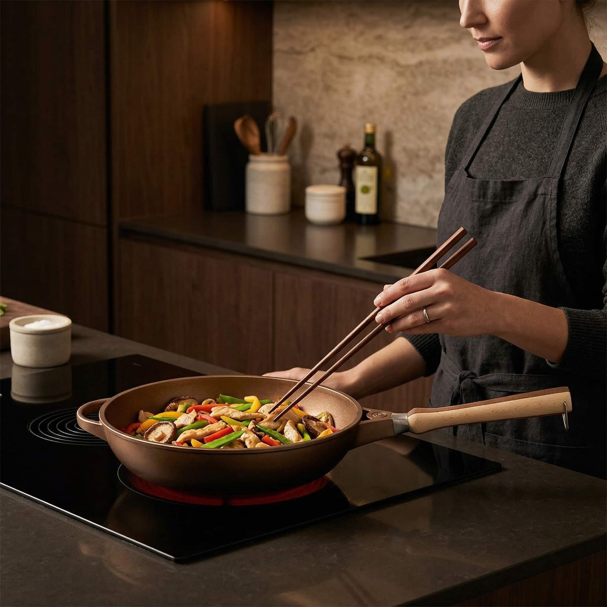 Wokken vraagt om snelheid. Je wilt hitte, ruimte en een pan die zijn temperatuur vasthoudt op het moment dat je ingrediënten erin gooit. Precies daar is de Luchetti K360 op gebouwd. De gepatenteerde handgreep is niet alleen mooi vormgegeven, hij zit ook gewoon goed in de hand. In veel Italiaanse keukens is deze wok al jaren een vaste waarde, en dat is niet voor niets.