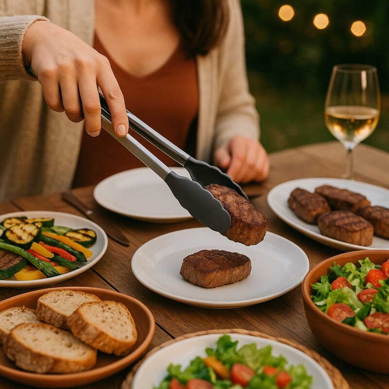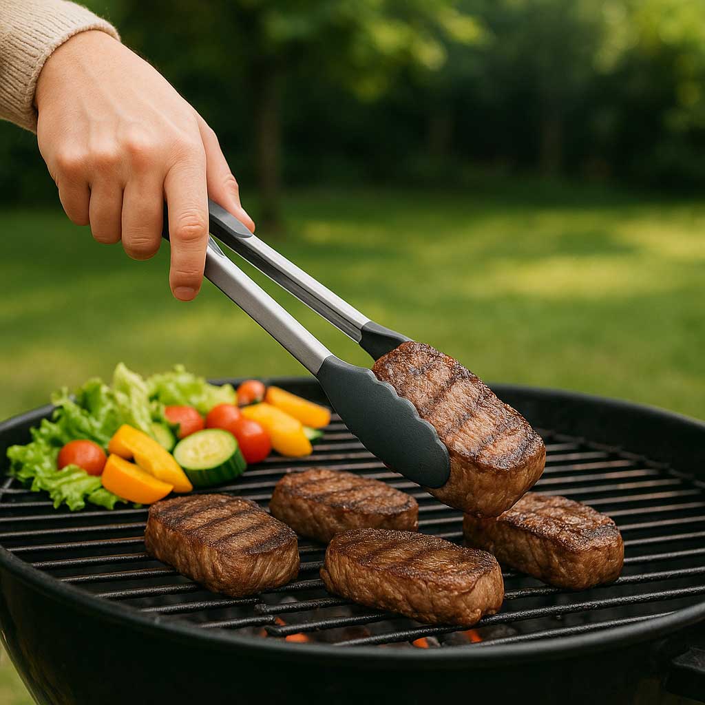 Met de serveertang van Delucio heb je altijd grip op je ingrediënten – letterlijk. De siliconen uiteinden zorgen ervoor dat je zonder moeite vlees, groente of pasta kunt oppakken en draaien, terwijl je pannen of servies beschermd blijven tegen krassen.