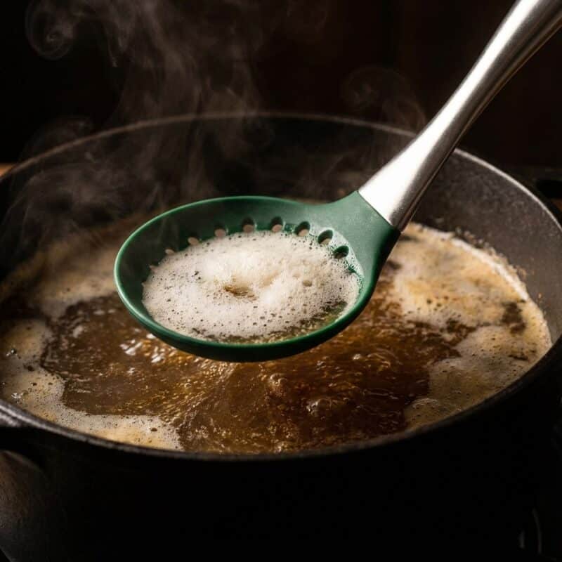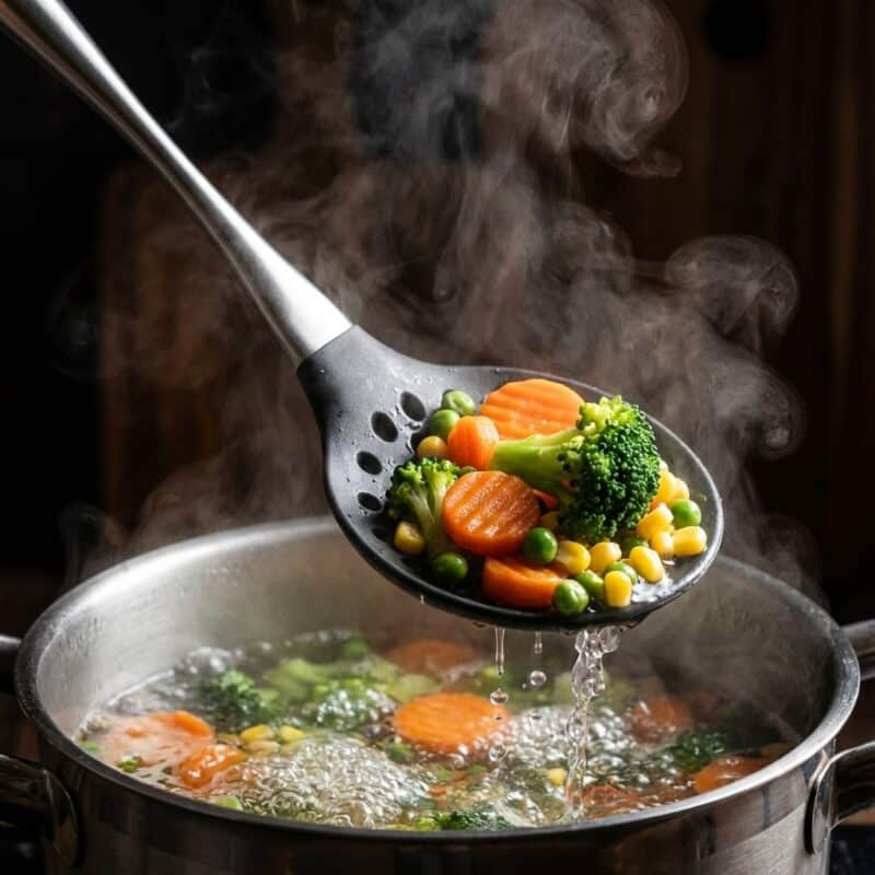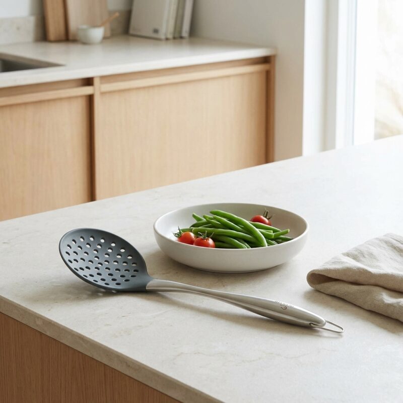 Gemaakt van roestvrij staal en voedselveilig siliconen, biedt deze vergiet spaan duurzaamheid en gebruiksgemak in één. Het siliconen oppervlak voorkomt krassen op je pannen, waardoor hun levensduur wordt verlengd. Bovendien is de spaan vaatwasbestendig, wat het schoonmaken eenvoudig en snel maakt. De afneembare ophanghaak zorgt ervoor dat je de spaan gemakkelijk kunt opbergen, waardoor je keuken altijd netjes blijft.